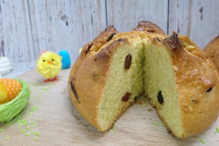 Priprema: Rastopiti margarin. Grožđice potopiti u vodi s rumom. U drugoj zdjeli rastopiti šećer u sojinom mlijeku. Dodati sitno naribane korice limuna i naranče. U brašno dodati kvasac, sol i kurkumu. Malo promiješati da se kvasac ravnomjerno rasporedi kroz brašno. Zatim dodati mlijeko i kratko zamijesiti. Dodati i rastopljeni margarin i nastaviti mijesiti. Tijesto staviti na toplo mjesto na sat vremena. Ocijediti grožđice i dodati u tijesto. Mijesiti tijesto da se grožđice ravnomjerno rasporede kroz cijelo tijesto. Podijeliti tijesto na dva dijela, oblikovati dvije kugle, pokriti krpom i ostaviti da se tijesto diže još 20 minuta. Zarezati pince nožem u tri ili četiri reza. Premazati ih biljnim mlijekom u kojemu smo rastopili žlicu šećera. Peći 30 – 40 minuta na 180 °C. Kada se pince izvade iz pećnice, još ih jednom premazati kombinacijom mlijeka i šećera za sjaj, dok su još vruće.