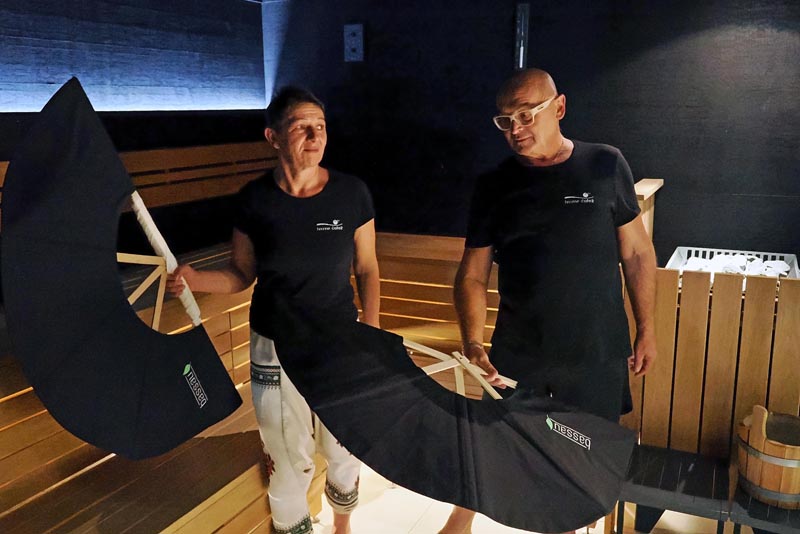 U Finskoj sauni izvode se posebni rituali kao što je aufguss – brzo vrtloženje zraka uz pomoć ručnika i lepeza, a koriste se aromaterapijski pripravci koji pomažu u dodatnom opuštanju tijela. Glazba prati raspoloženje gostiju, a uključuje i pljeskanje u ritmu. Parna sauna (turska sauna) pruža visoku vlažnost i temperaturu od oko 50 °C, a para jamči djelovanje kao prirodni inhalator koji pomaže kod alergija i respiratornih problema. Para također otvara pore te omogućava dubinske pilinge i čišćenje kože. Kako bi djelovanje parne saune bilo učinkovitije, Tatjana i Iztok pripremaju posebno kreirane pilinge u kojima se povezuje baza (sol ili šećer) s prirodnim sastojcima eteričnih ulja, ljekovitog bilja…