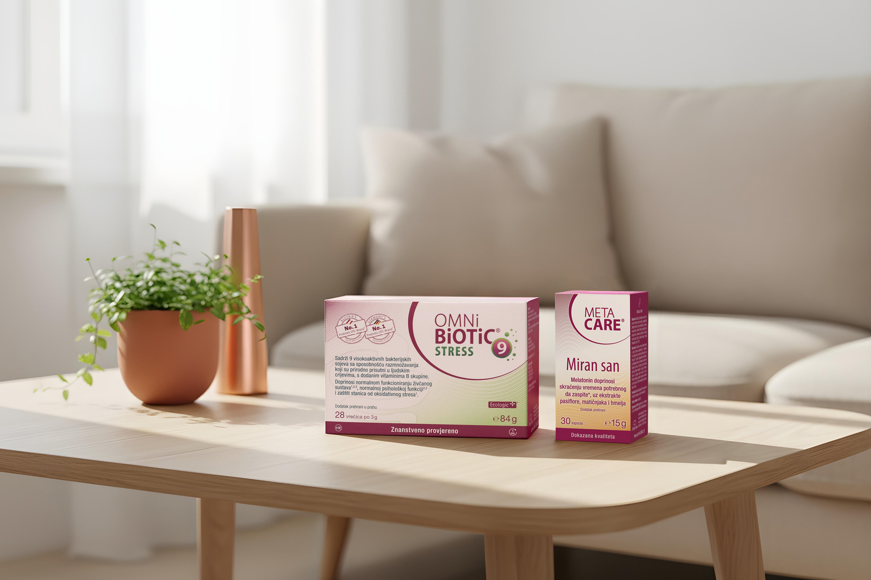 Kako bi se ta ravnoteža zadržala i tijekom vremena kada odmaramo, važnu ulogu ima i kvalitetan san. META-CARE® Miran san je dodatak prehrani koji sadrži ekstrakte biljnih tvari pasiflore, matičnjaka, hmelja, ashwagandhe i šafrana – tradicionalno poznatih kao pomoć pri spavanju i opuštanju. Melatonin u ovom proizvodu doprinosi skraćenju vremena potrebnog da zaspite, a sadrži i cink koji doprinosi normalnoj kognitivnoj funkciji i zaštiti stanica od oksidativnog stresa te normalnoj funkciji imunosnog sustava.