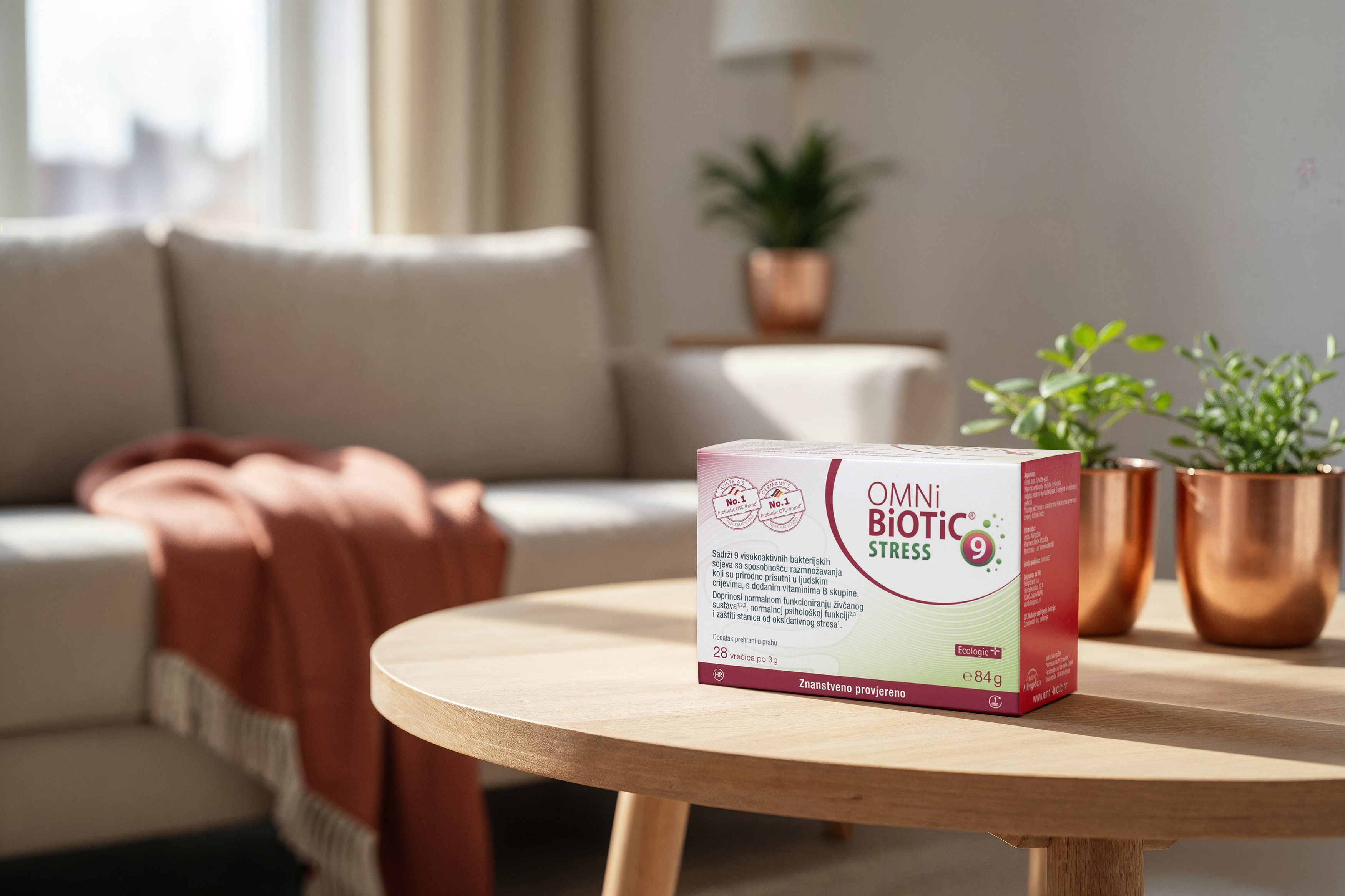Sinbiotik OMNi-BiOTiC® STRESS podržava dobrobit crijeva kombinacijom devet pažljivo odabranih bakterijskih sojeva i vitamina B skupine, koji doprinose normalnom funkcioniranju živčanog sustava i psihološkoj funkciji te zaštiti stanica od oksidativnog stresa.