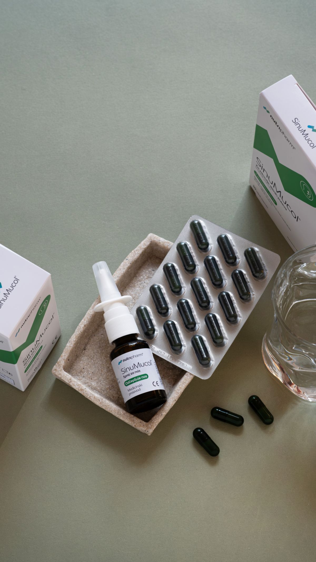 Kod problema sa sinusima i začepljenim nosom često je najučinkovitiji kombinirani pristup. Dok Nutripharm® SinuMucol® sprej za nos djeluje lokalno, smanjuje oticanje sluznice i olakšava disanje, Nutripharm® SinuMucol® kapsule pružaju podršku iznutra, pomažući organizmu da se lakše nosi s nadražajem gornjih dišnih puteva.